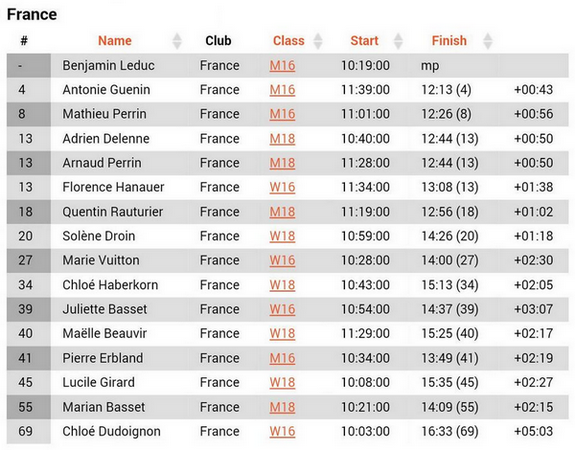 Du coté des françaises, la meilleure performance D16 est réalisée par Florence HANAUER (13ème) et en D18 c'est la stéphanoise Solène DROIN qui s'en sort le mieux avec une 20ème place.